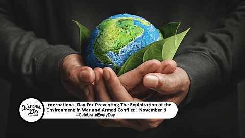 In November 2001, the UN General Assembly declared November 6th as the International Day for Preventing the Exploitation of the Environment in War and Armed Conflict. The day is also referred to as World Day to Protect the Environment in War.