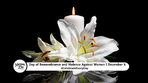 The National Day of Remembrance and Action on Violence Against Women is observed during the 16 Days of Activism Against Gender-Based Violence. This international campaign begins with the International Day for the Elimination of Violence against Women on November 25th. It ends on December 10th, which is World Human Rights Day.