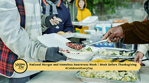 Hunger and Homelessness Awareness Week focuses on giving and caring the week before Thanksgiving. The observance serves as a reminder that hunger and homelessness don't stop for the holidays. They continue all year long.