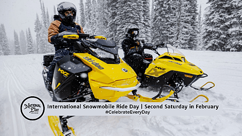 The second Saturday in February is International Snowmobile Ride Day as a day to encourage everyone to bundle up for an exciting adventure outside on a snowmobile.