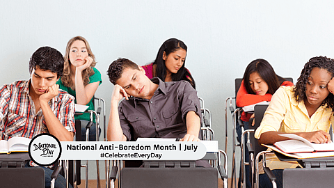 National Anti-Boredom Month during the month of July encourages everyone to identify what makes us bored and find ways to combat it!