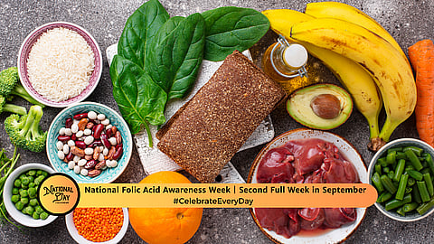 National Folic Acid Awareness Week seeks to spread awareness about the importance of folic acid. The observance takes place every year during the second full week of September. It is especially crucial for pregnant women as folic acid helps to prevent some kinds of congenital disabilities.