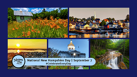 Join National Day Calendar as we celebrate New Hampshire's historic places, panoramic scenery and captivating personalities. Explore all New Hampshire offers! Use #NationalNewHampshireDay to share on social media.