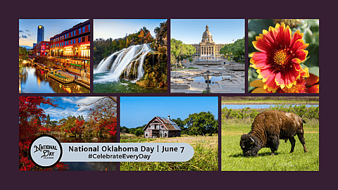 National Oklahoma Day on June 7 recognizes the 46th state to be granted statehood. Unlike the April 22 Oklahoma Day state holiday that celebrates when Oklahoma became open to settlement, our National Oklahoma Day is an additional celebration for Oklahoma that celebrates the unique heritage, achievements, and spirit of Oklahoma.