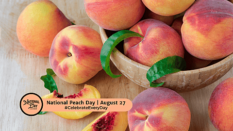 August 27 is National Peach Day on the National Day Calendar to celebrate one of summertime's most scrumptious fruits known as the peach! August is prime peach season in the U.S. and we want everyone to enjoy a few peaches, plus remember the hardworking peach growers who provide us with this delicious fruit.