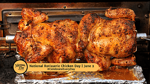 Chicken lovers celebrate National Rotisserie Chicken Day on June 2 each year. While there a numerous ways to cook a whole chicken, rotisserie chicken offers a slow cooking method that seals in flavor.